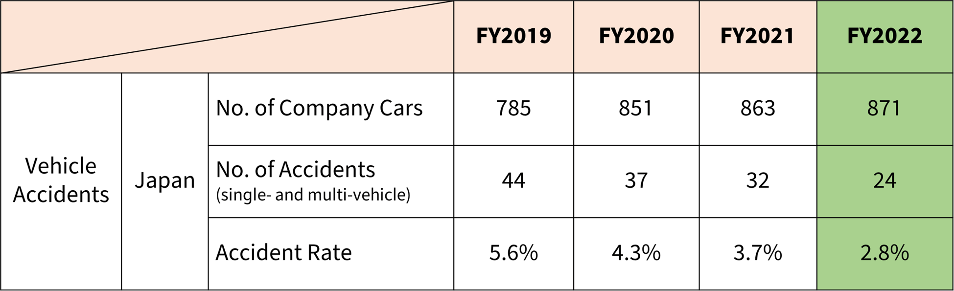 Shoubu: One of the notable successes we have seen is on the driving front. The rate of traffic accidents involving company-owned vehicles has been decreasing as a result of several years of efforts in both hardware and in-house traffic safety education.