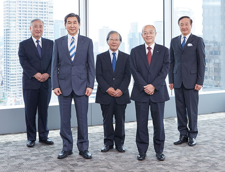 From the left: Ryosuke Aihara, Tatsujiro Kurosaka, Isao Kitamoto, Yoshihisa Kimura, Tsukasa Miyajima