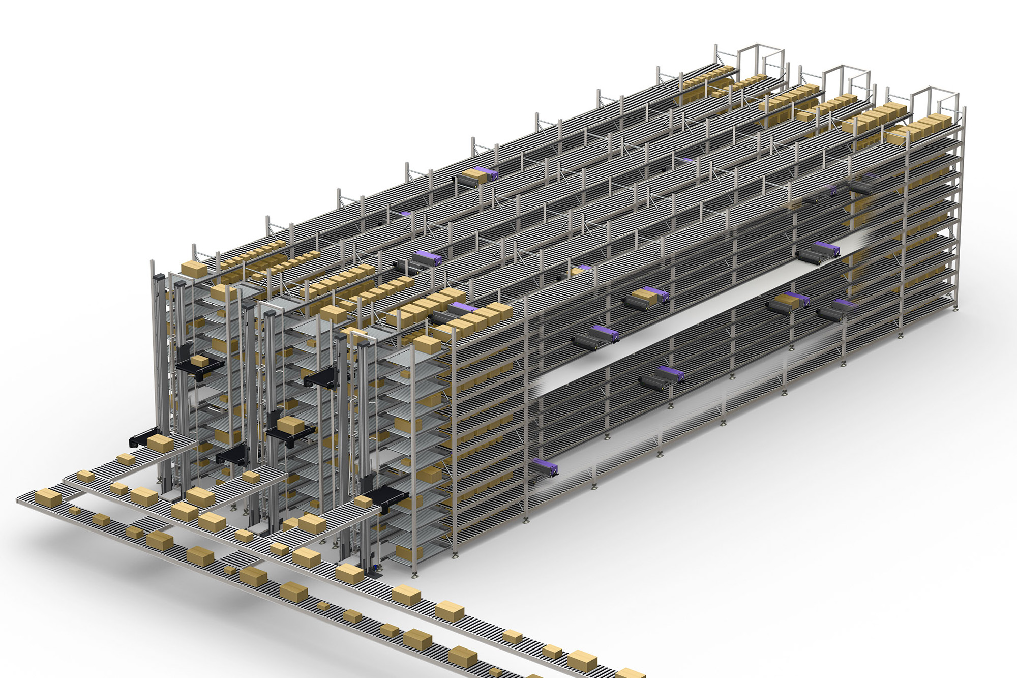 (※)シャトルラック:レールつきラックのなかを台車が走行し、パレットの入出庫を行う保管システム。