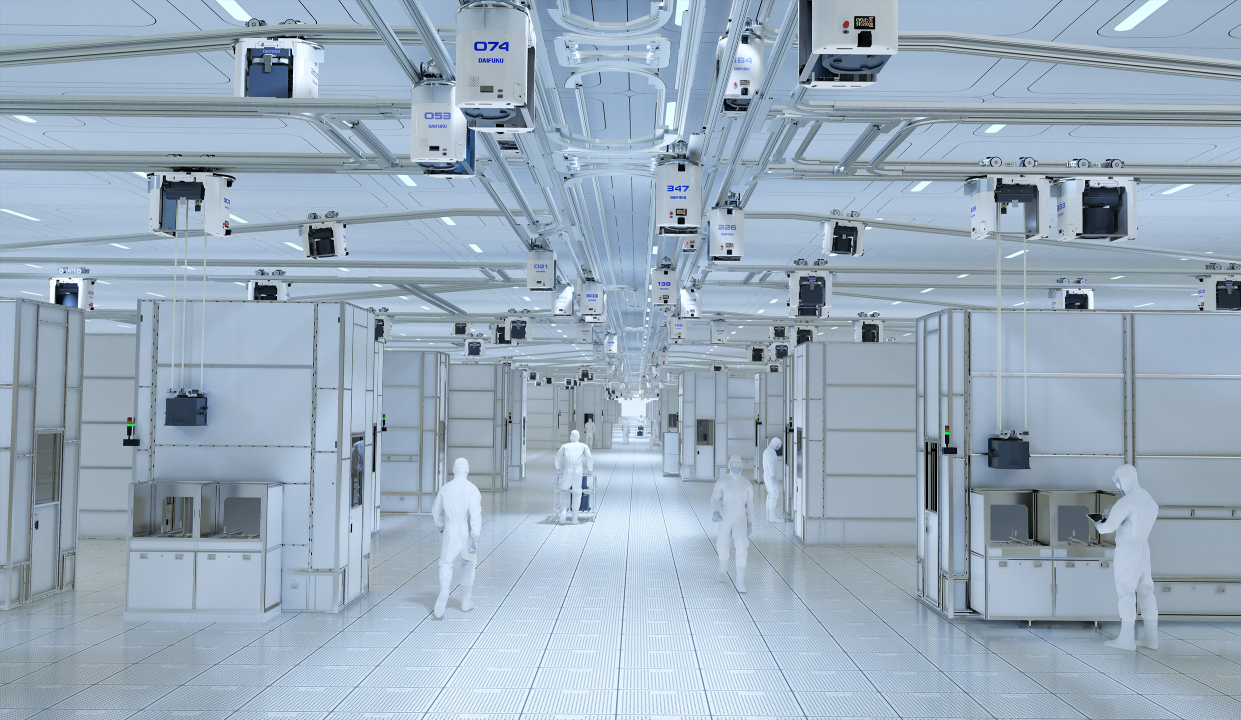 その一方、生産拡張に向けて、「ギガファブ」と呼ばれる巨大な半導体製造工場が増えてきており、それに追随した自動搬送システムの開発も喫緊の課題だとT.Sは考えている。「どんどん工場の建屋面積が広くなり、複数の工場をまたがった搬送もいま以上に増えてきます。そうなった時に想定される新たな課題はいくつもあります。その一つは、自動搬送システムの渋滞発生率の上昇。そこでダイフクでは、AIを活用し渋滞の事前予測を行うことで、自動搬送システムの加減速や最適なルート検索を実現し、渋滞を回避するシステムの開発を進めています」。世界的に半導体不足が叫ばれるなか、搬送システムがなければ大量の半導体生産は遂行できない。その重要性を強く意識し、たゆまぬ技術革新で半導体業界の成長を支える。それがダイフクの使命だ。
