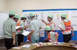 In September 2014, Daifuku implemented a role-play training that simulated a scenario of a large earthquake at the Shiga Works for the first time, aimed at raising employees’ response capabilities in emergency. About 1,700 employees from all factories participated in the practical training, which responds to unexpected events. This training will be regularly held to increase such response capabilities in the event of disasters.