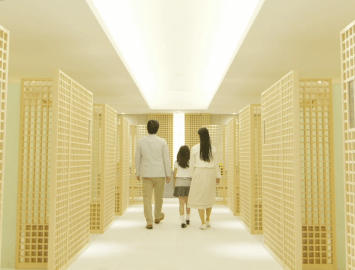 The site of approximately 450 square meters houses 7,000 urn boxes. Many compartments have been created in a limited amount of space, while still maintaining a sense of privacy and spaciousness.