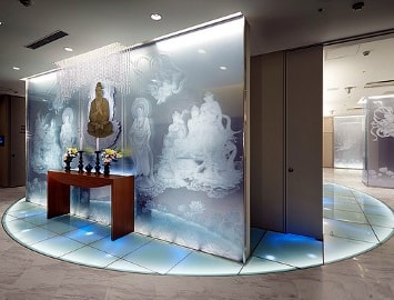 Banshoji Temple offers a wide variety of columbarium halls that can be selected according to the burying style, worship style and budget, symbolizing the diversification of memorial services today. They built their first columbarium in 2008, followed by a new concept columbarium, the Shosuden, in 2009. Its beautiful presentation and security features have attracted a lot of media attention.