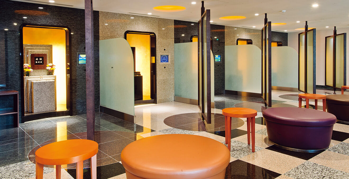 狭い土地で高層保管できる自動倉庫の技術を活用して、自動搬送式納骨堂を提供しています。