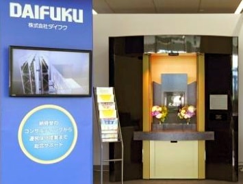 常設の総合展示場「日に新た館」では、納骨堂システムの参拝ブースで操作を体験して頂けるほか、ダイフクの自動倉庫技術を見学いただけます。