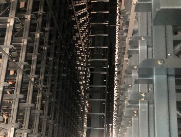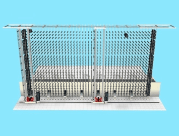 自動搬送式納骨堂の仕組みは、高層の収納棚・厨子を搬送するスタッカークレーン・参拝ブース・管理システムで構成されております。従来のロッカー式や仏壇式に比べて高さ空間を有効活用することで、限られた用地内により多くの区画を設けることが可能です。また、見上げたり、しゃがみ込む事なく、プライベートの保たれたゆとりのある空間でゆっくりとお参りすることができます。