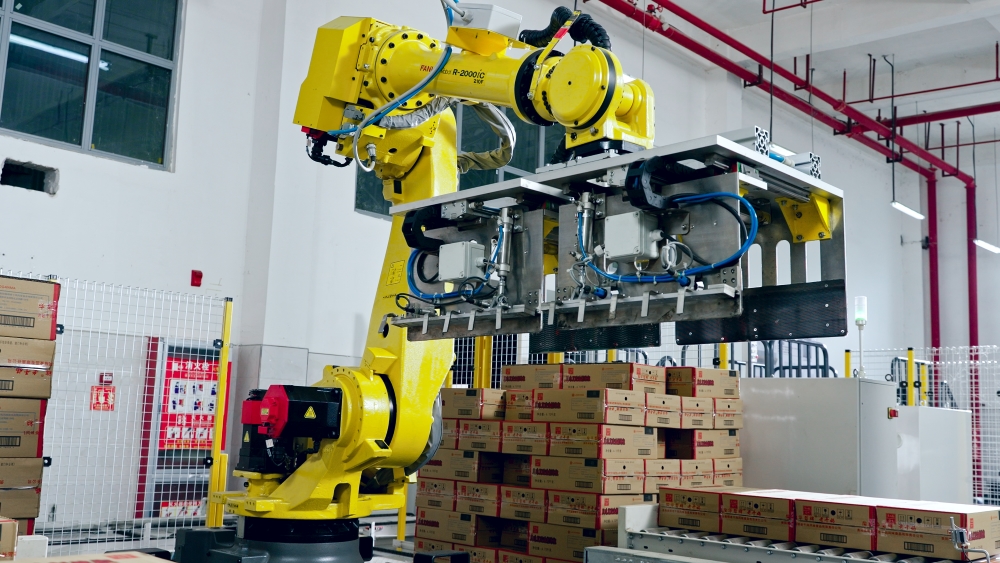 Additionally, the project includes five palletizing robots, a sorting system, and a case and pallet conveyor system connected to the production lines. This setup has achieved end-to-end automation across production, storage and outbound logistics, significantly improving overall operational efficiency.