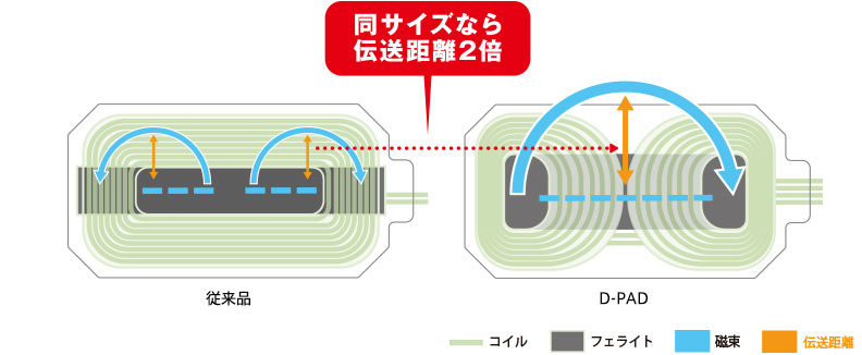 D-PADとは、送・受電パッド内のコイルの形状がアルファベットの「D」に