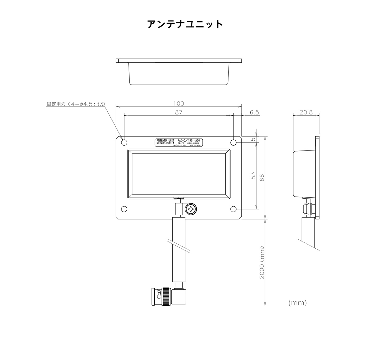 オプション アンテナユニット PAD-O/1R5/A2* ※3 (送受信共通)