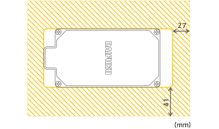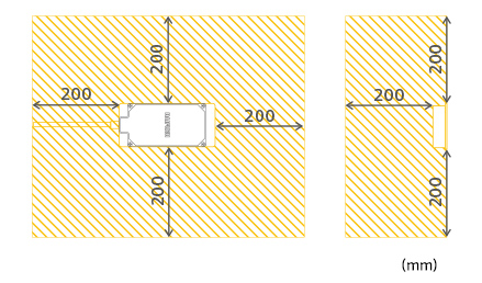 PAD対向面を含む、範囲内に金属等の磁性体を配置した場合、金属が発熱して危険ですので配置しないでください。