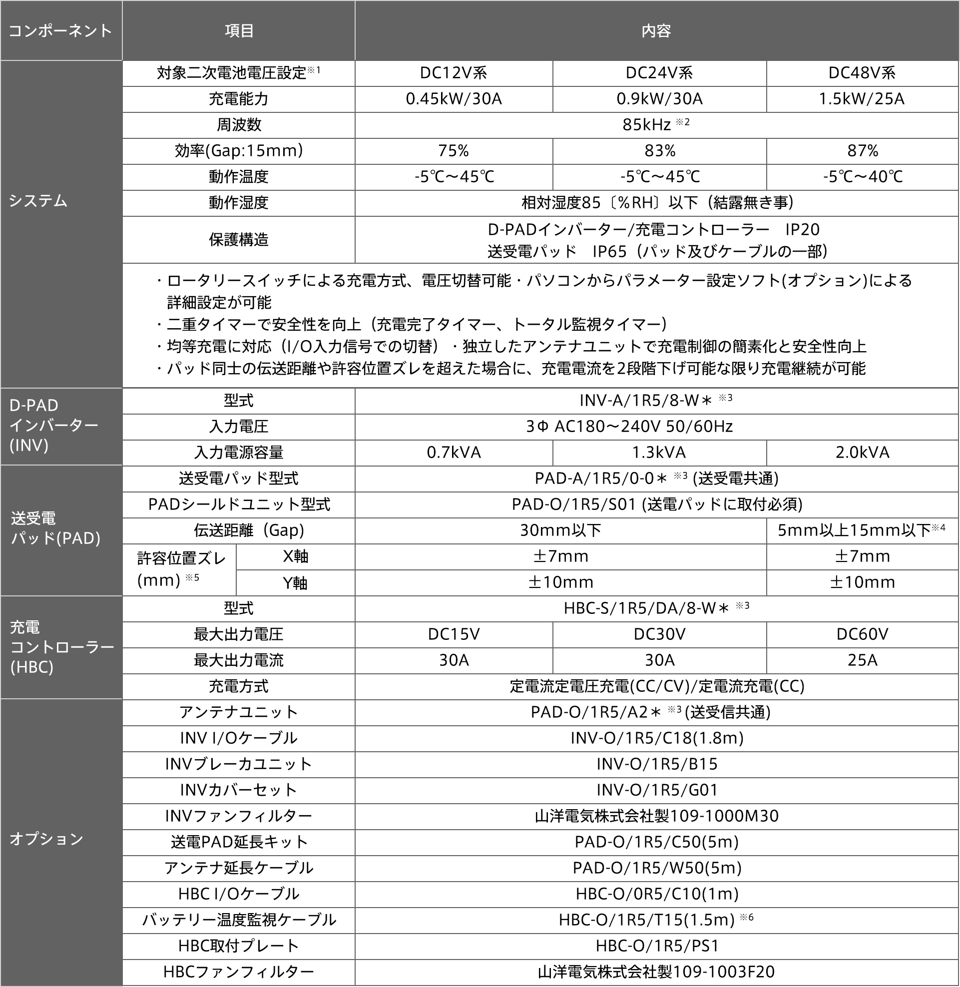 • ※ 中型ワイヤレス充電システムには15A充電タイプ(鉛蓄電池専用)もあります。詳しくはお問合せください。