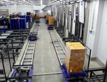 Transferring products to and from the ASRS, dual type-STVs, and shipping area, are automated via the loop type-STVs.