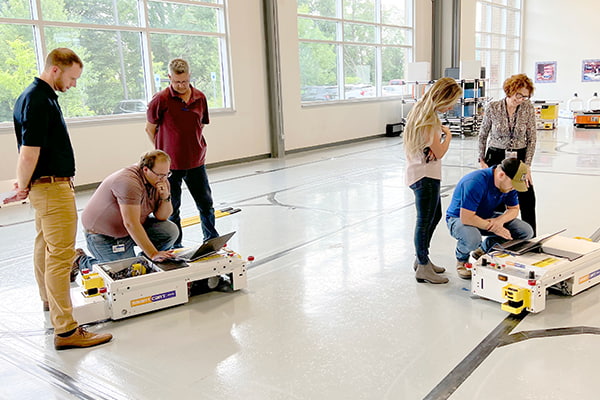 AGV Training Classes allow users to take control and maintain their systems. In the hands-on classes, students are taught about the features of each software tool. Course exercises allow for practice programming, modifying paths, and monitoring system/vehicle performance.