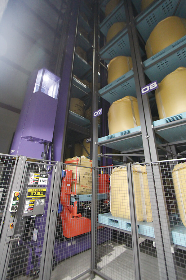 The temperature inside the storage facility is set at 15 degrees Celsius to allow the rice to temporarily lie dormant. By storing the rice on a pallet-by-pallet basis in the rack, the cool air can be distributed evenly and the quality of the rice can be maintained.