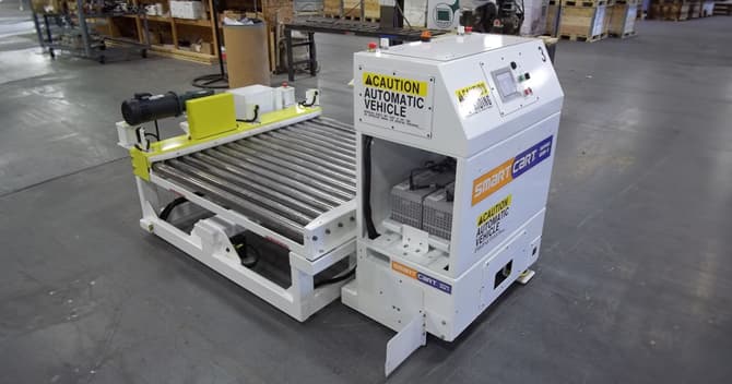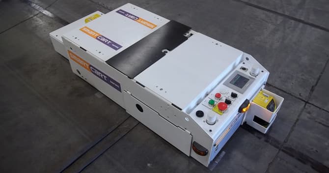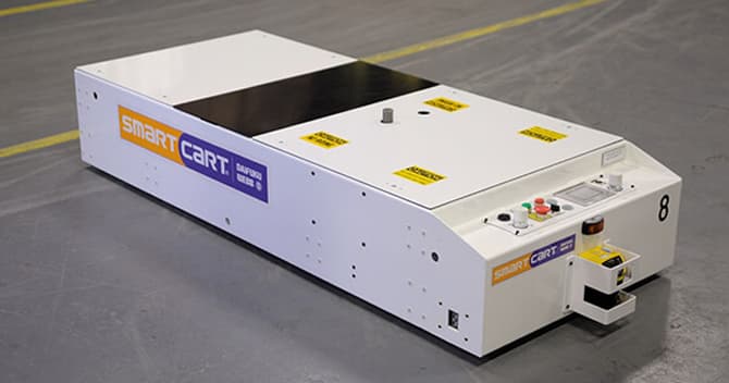 SmartCart AGVs are a flexible and cost-effective assembly line solution that can tow or carry loads up to 10,000 kg. These AGVs be customized with a load handling carrier or a scissor lift to meet your specific needs. They can form a continuous moving line where an unlimited number of SmartCart AGVs remain synchronized at a close distance while traveling at a slow speed.