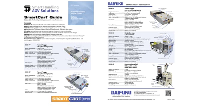 Daifuku is the leader in Automated Guided Vehicles (AGVs). Since entering the AGV business in 1961, over 14,000 AGVs have been sold to date. These AGVs can increase productivity, reduce operating costs, and improve ergonomics for nearly any company in any industry, including automotive, distribution and manufacturing.