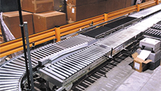 For lower sort rate applications, Daifuku offers a bow arm sorter. The bowed face of the arm diverts the product from the sort conveyor onto a powered or non-powered 45-degree take-away conveyor. This diverter will maintain the orientation of the product from the sortation conveyor through the take-away.