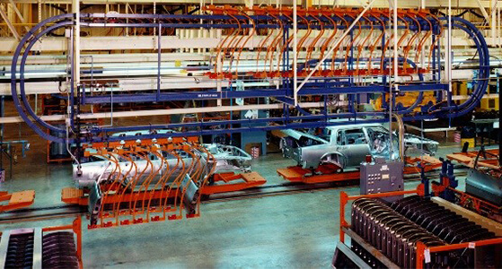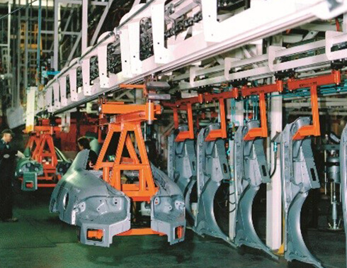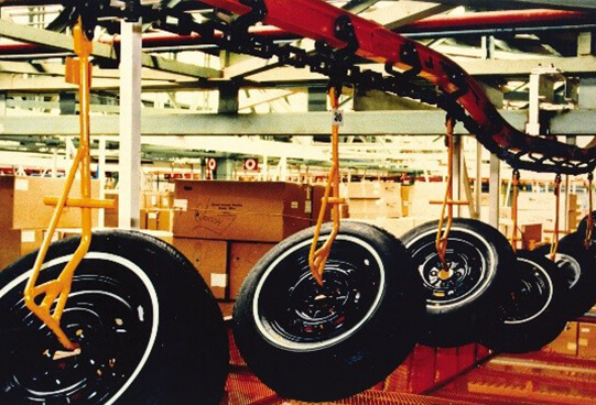 Daifuku Automotive America, a subsidiary of Daifuku North America, Inc. (Daifuku), offers a complete line of chain conveyor systems, components, and accessories. In 1919, we set industry standards by designing and manufacturing chain conveyors. These conveyors offer a cost-effective and versatile method to move products from point to point through manufacturing and processing operations. Minimal maintenance is required considering their durability and load carrying capabilities.
