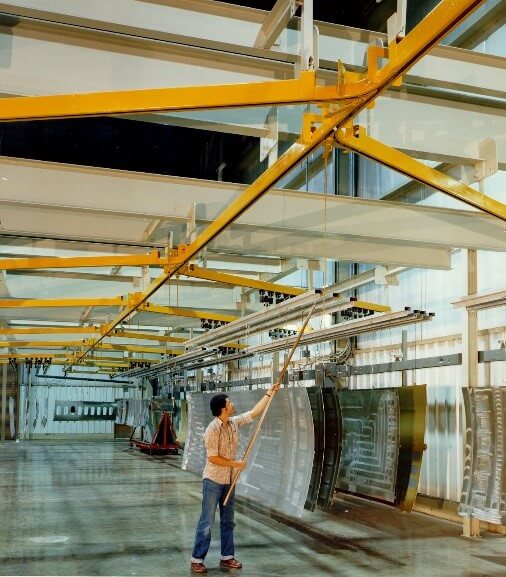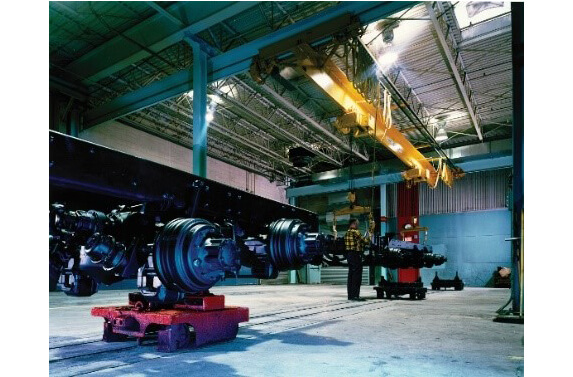 Our exclusive Wide Wing design trolleys and lug channel track provide smoother conveyor to conveyor transfers, increased load stability, and a stronger track section than other manufacturers. Load capacities range up to 16,000 lb. (7,200 kg).