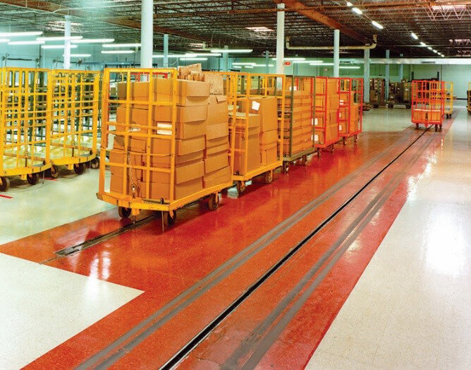 Towveyor® conveyors are simple, easy-to-maintain, non-synchronous towline systems that provide high-volume, unattended material transport via tow carts that move above in-floor tracks. For decades, towline conveyor systems have played a significant role in the successful automation of warehouse and distribution facilities, plants, freight terminals, and newspaper printing plants.
