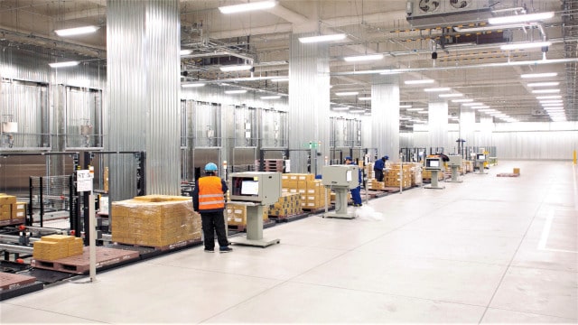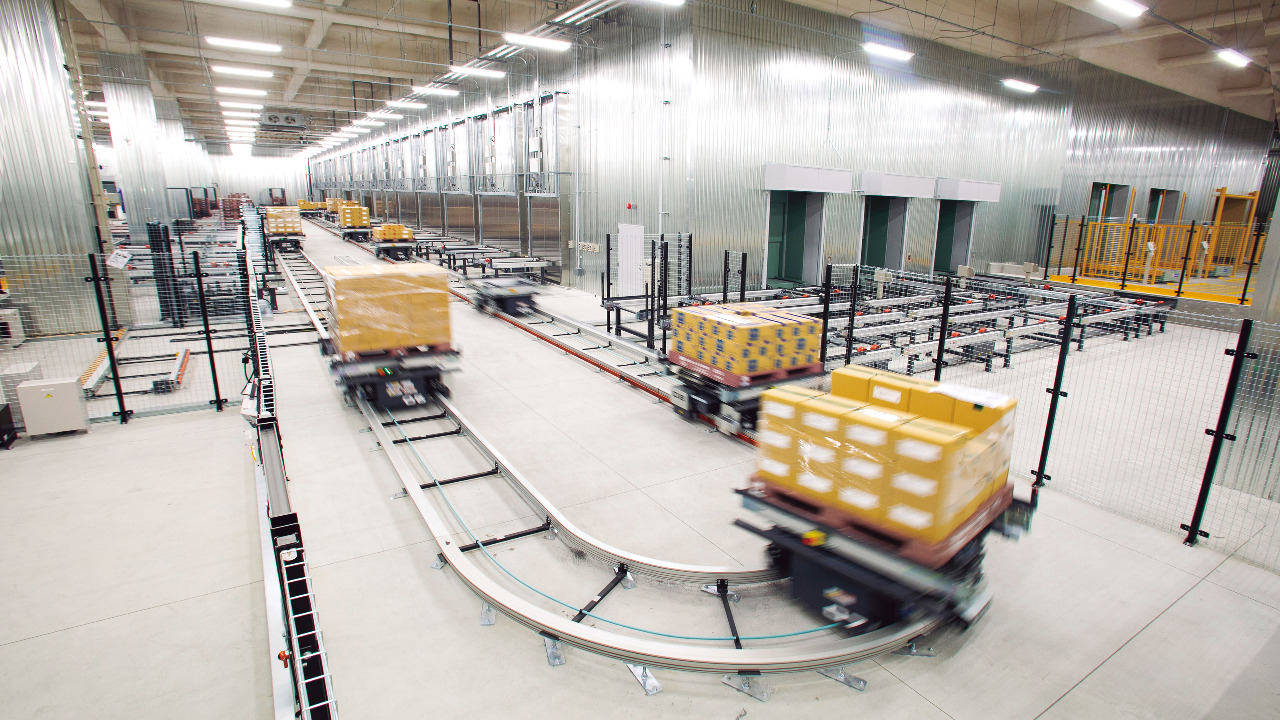 自動倉庫とピッキングステーション間の搬送、荷揃え後の出荷エリアへの搬送を高速で行います。