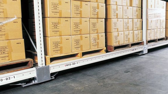 ロットが大きく、パレット単位で入出荷を行う、輸入品や水産・畜産品などは、平置き倉庫で運営が可能です。一方、多品種少量でケース単位の出荷が多い冷凍食品やアイスクリームなどは、移動ラックを導入する事で、保管量を確保しながらロケーション管理とピッキング作業の効率化が図れます。既存の平置き倉庫において、ケース出荷品が増加した場合は、移動ラックの導入をご検討ください。レールレスタイプの移動ラックは、床工事が不要なため、既設倉庫でも短工期で設置が可能です。
