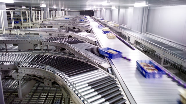 大小さまざまなケースやコンテナを高速で仕分けます。