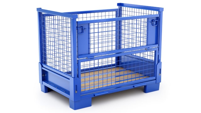 機械部品の保管によく利用される、4本脚のボックスパレット。(足の形状によっては対応できない場合があります。) -