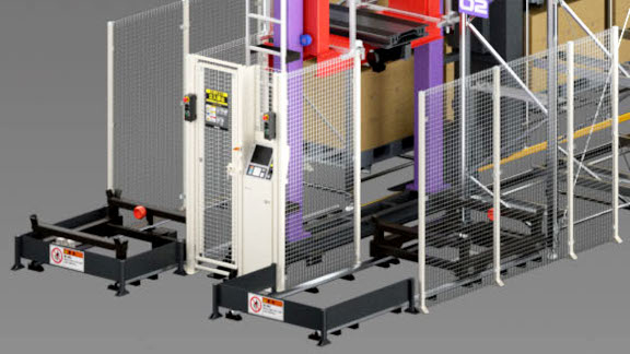 金型保管自動倉庫などは、プレス機にアプローチしやすいラック側面に入出庫口を設置します。 -