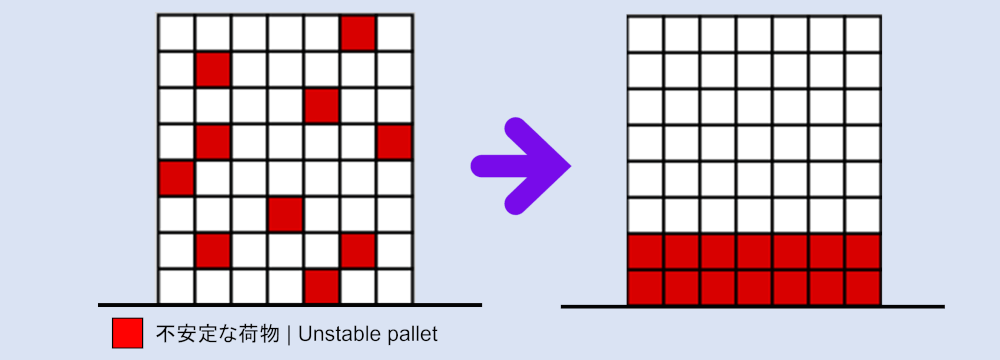 | 保管ゾーン最適化による荷物の揺れ削減 | |||||