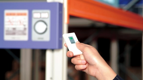 ロックが解除された通路や、ラックが移動し閉じかかっている通路にフォークリフトや作業者が侵入した場合、センサによって自動的にラックを停止し、ロックをかけます。