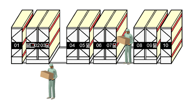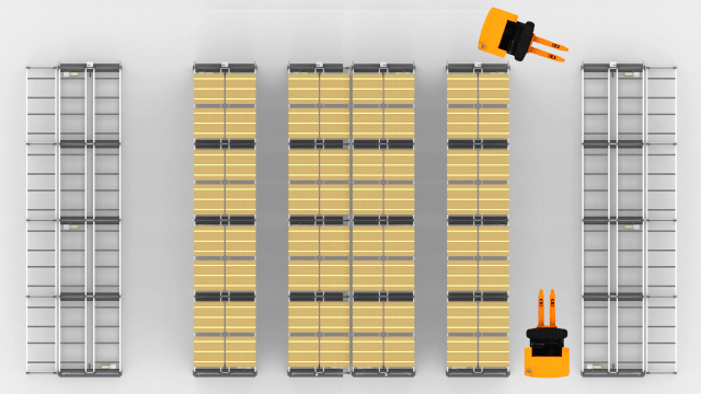 フォークリフトでの荷物の出し入れに最適な基本モード。通路幅はお客様の運用ニーズに合わせ決定します。