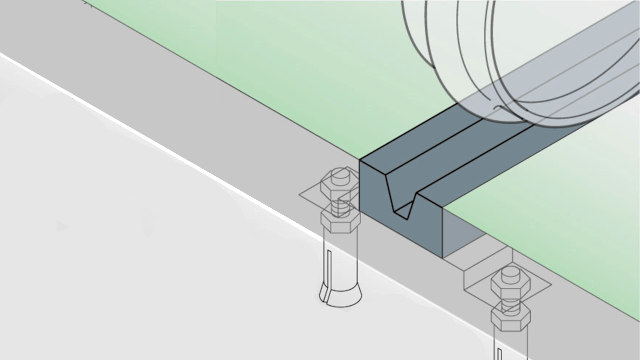 新築倉庫向けの一般方式。建築・床工事と連携し、コンクリート床にレールの支持金具を設置し埋設します。