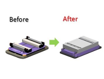 MVを新しい台車に入れ替えます。1台から全台数の分割更新が可能です。誘導路は流用またはレイアウト変更することも可能です。