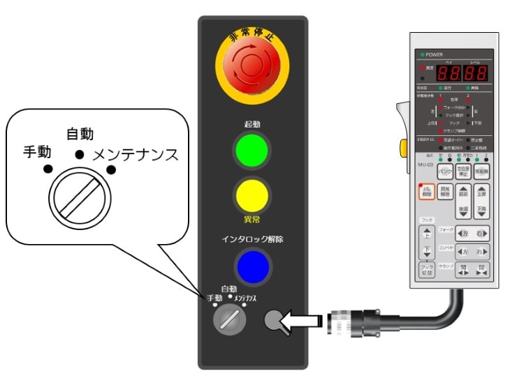 コンピュータでのオンラインモード(自動運転)、地上制御盤(RMC)でのリモートモードで操作することは含まれません。