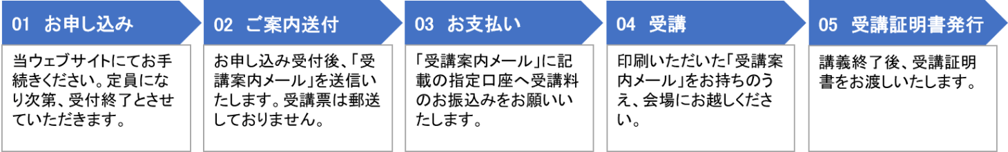 • 振込先につきましては、受講案内メールにてお知らせいたします。
