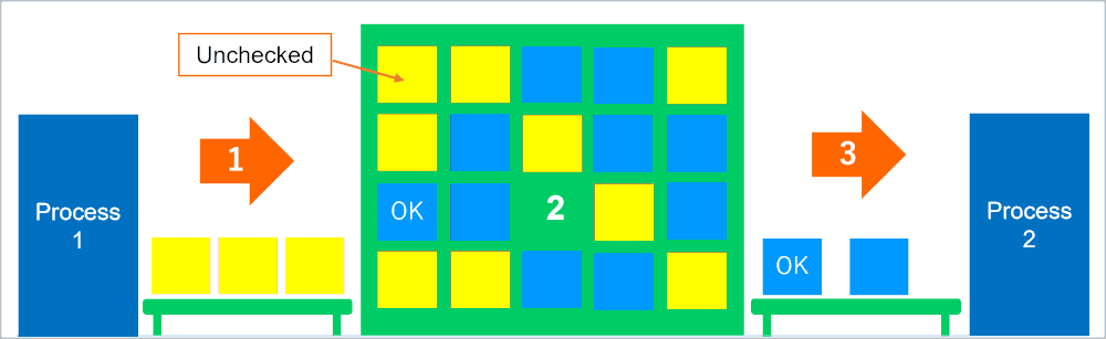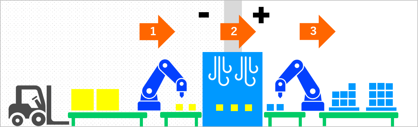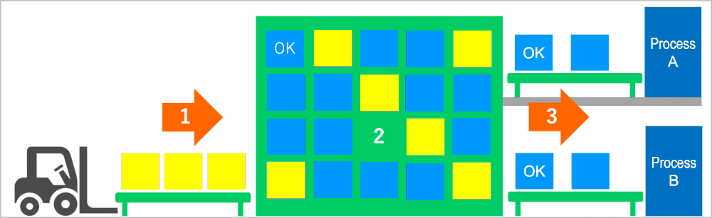 Not only for food and pharmaceuticals, but for manufacturing in general, it can become necessary to temporarily store items mid-production due to factory uptime, the varying speeds of different production processes, or because the product requires rest before the next process. For these kinds of cases, by implementing an AS/RS, it becomes possible to temporarily store items and to JIT supply the production line. Compared to horizontal storage, using first-in/first-out (FIFO) storage to supply the production line helps prevent the use of items that fail inspection.