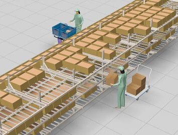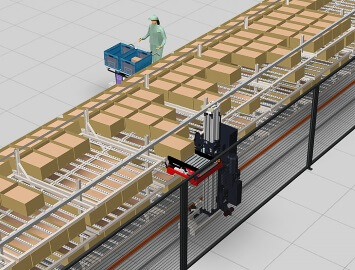 Daifuku's automatic replenishment system uses a mini-load AS/RS to solve the issues. A crane automatically replenishes picking buffer lanes in a timely manner so that the need for replenishing workers, and the accompanying human errors and lost operation time, is completely eliminated.