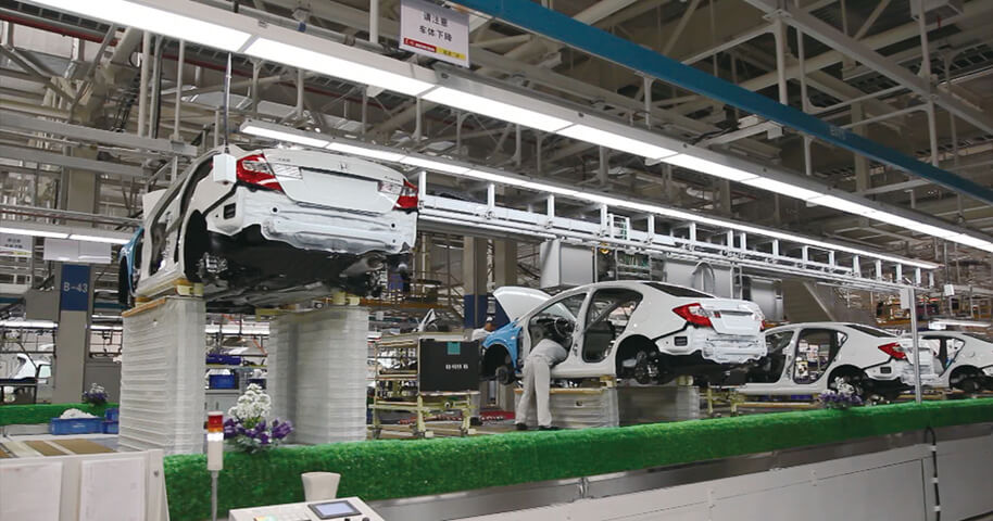 Headquartered in Wuhan, China, Dongfeng Honda Automobile Co., Ltd. is a joint venture with Honda Motor Co., Ltd. for the production and sale of four-wheeled vehicles in China. In 2012, the company commenced operations at its newly opened second plant in Wuhan, which was built to increase production capacity. Using state-of-the-art systems and processes, such as the FALS (Flexible Assembly Leveling System), which is a full pallet conveyor system that allows for adjustments of the car platform (chassis) on the production line; and "set-pack trollies" to supply parts to the line, has enabled Honda to achieve its goal of building a human-friendly and highly efficient plant.