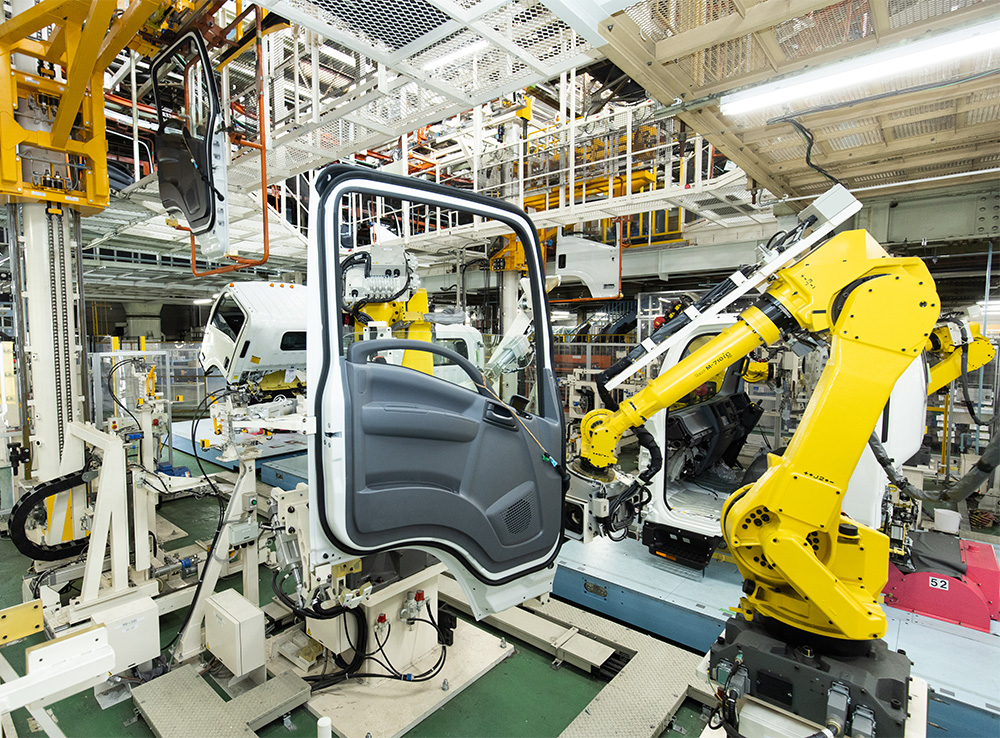 Ueki: The plant assembles our light-, medium-, and heavy-duty trucks, and is also equipped with a research facility. With a site area of about 820,000 ㎡, it takes approximately 20 minutes to walk from end to end. The site has four plant buildings: Plant 1 handles the pressing, welding, and painting, Plant 2 carries out the cabin outfitting and vehicle assembly, and Plant 3 and Plant 4 manufacture the axle, transmission, and other parts of the powertrain.