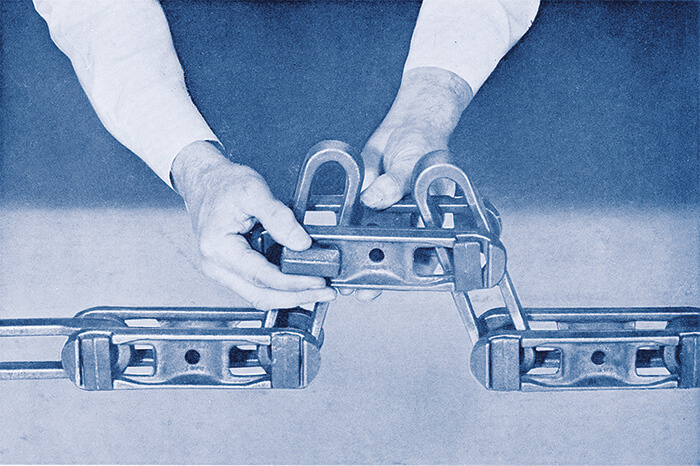 The Webb rivetless chain conveyor is forged, making it extremely strong, and can easily be coupled and dismantled without using tools. It also offers the advantage of flexible production line design, as the rivetless chain can easily adapt to curves and slopes.