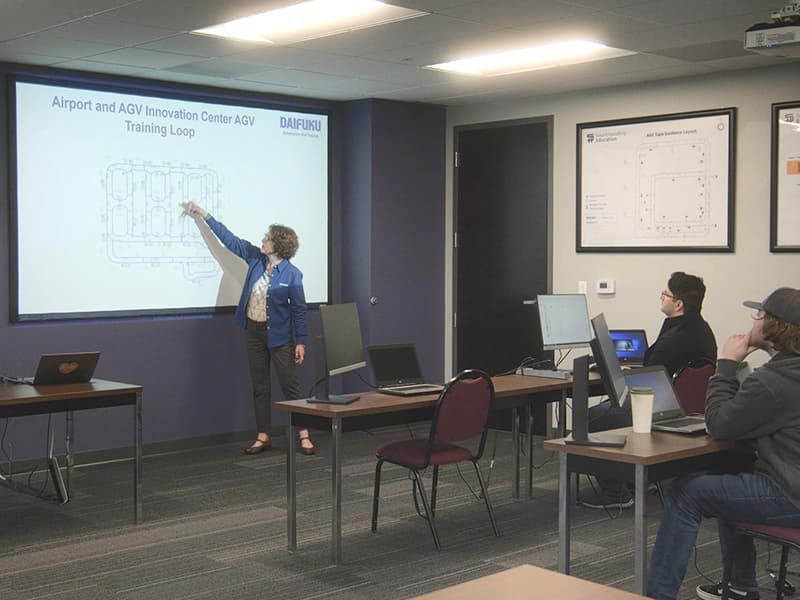 The center is the only facility in the U.S. where Daifuku Airport Technologies’ systems and six models of Webb’s AGVs are on permanent display, all of which are available for hands-on operation. Visitors can experience up close the integrated flow of Daifuku’s airport systems, starting from baggage check-in and security checks, through to baggage transport and storage. The facility is used to give tours, with visitors including airlines, airport officials, and automobile manufacturers, and is also used for component testing and integration partner training.
