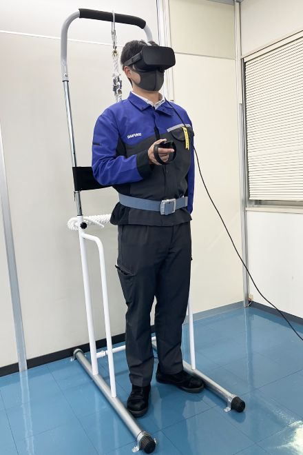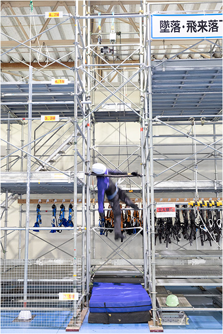 For the workshop on falling to a lower level, participants are taught the importance of always wearing safety harnesses when working at heights by observing a 75 kg mannequin’s violent fall from a height of 3.5 m. Participants can also experience the sensations involved with a fall accident through VR equipment. These experiences help promote awareness of the dangers of working with heights.
