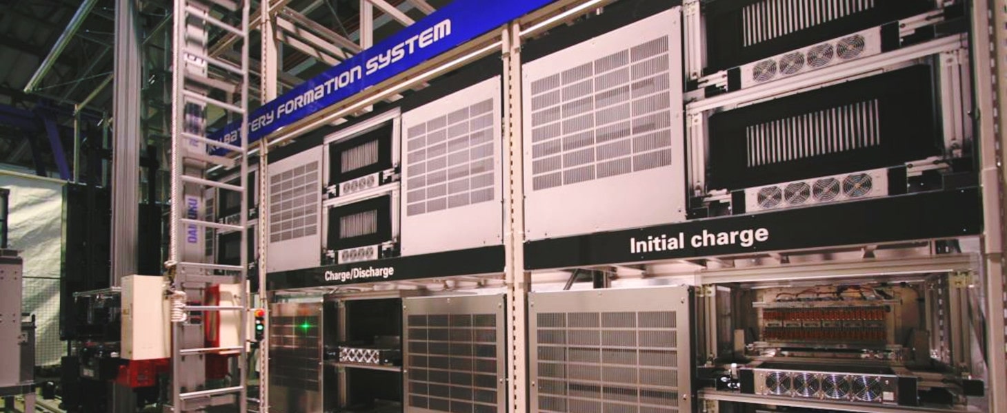 電池製造工場における常温エージング、高温エージング、充放電、検査などの各工程をスムーズかつ効率的にハンドリングするMini-Plantをご紹介します。Mini-Plantは、これらの工程を1つのAS/RSに集約することで、複雑な搬送装置や積み重ね装置をなくしました。電池仕掛品がMini-Plantに入ると、すべての工程が同じ通路内で行われます。