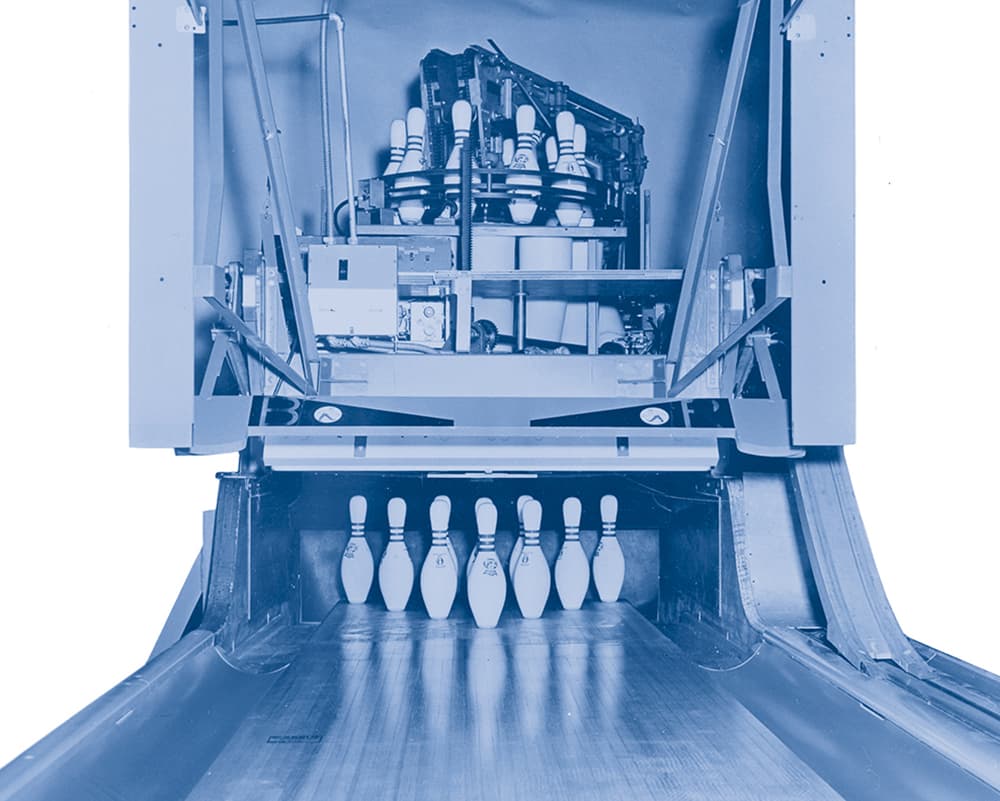 1960年代前半から、日本ではボウリングが人気となりました。1972年にはボウリング人口が1,000万人に達し、ブームは頂点に達しました。このボウリング熱を支えたのが、ダイフクのボウリングマシンでした。