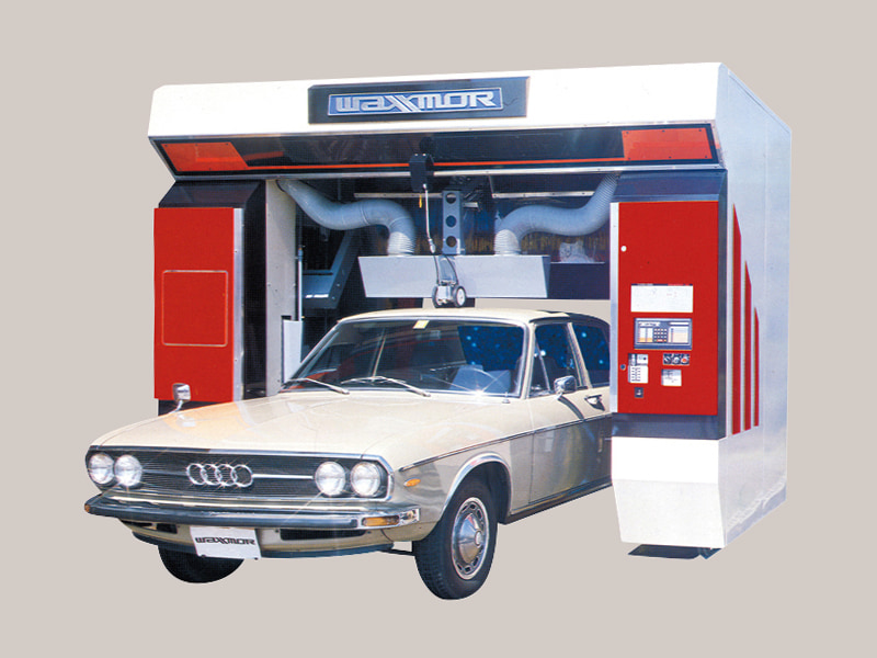 そのような中、1977年に当社は洗車機の製造を開始。4年後の1981年、マテハン分野で培った制御技術を生かし、日本初となるマイコン搭載の洗車機「ワックスモアー303」を開発しました。それまでの洗車機はリレー制御が一般的でしたが、ワックスモアー303はマイコン制御を採用したことで、水洗い・リンス・ワックス・乾燥の4工程を組み合わせ、全7コースから洗車メニューを選択可能にしました。加えて、POS(販売時点情報管理)システムで、手間をかけずに洗車料金の収入管理ができるようになりました。洗車機に新たな付加価値を生み出したことで、SS業界から高い評価を受け、従来の洗車機の倍の価格だったにもかかわらず、洗車の有料化を図りたいSSを中心に当社洗車機の販売台数は大きく増加しました。
