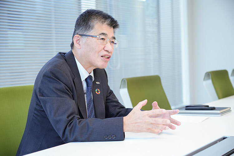 人材育成については、役員・全社員を対象にしたDX/AIに関するeラーニングの実施を順次進め、全社的なリテラシーの向上を図っているほか、選抜した社員を対象に、課題発見力、解決する発想力やデータ活用力を持ち合わせたデータサイエンティストの育成講座「D-Adapt」を国内の主要拠点で開設しています。いずれは講座を国内外全事業所に展開し、全社員の10%をDX/AI人材とすることを目標にしています。こうした人材育成の取り組みは、知識やスキルの習得はもちろんのこと、業務の中で先端技術を取り入れることへの意識的なハードルを下げることを一番の狙いにしています。