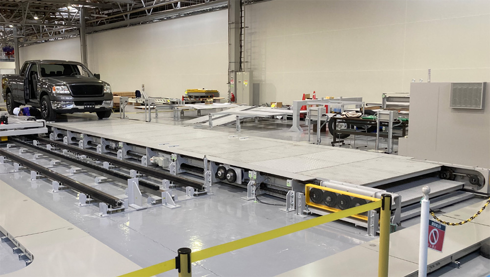 自動車生産ライン向けコンベヤのチェーンののびをデータ化する検証の様子