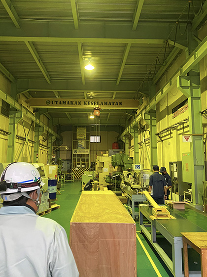 日系企業ということもあり日本側で数ヵ月間、日本の担当者さまと仕様の打ち合わせを進め、その後現地へ1ヵ月程出張し、インドネシア人のお客さまへ仕様の説明や、予算内に収めるためのさまざまな提案を行いました。