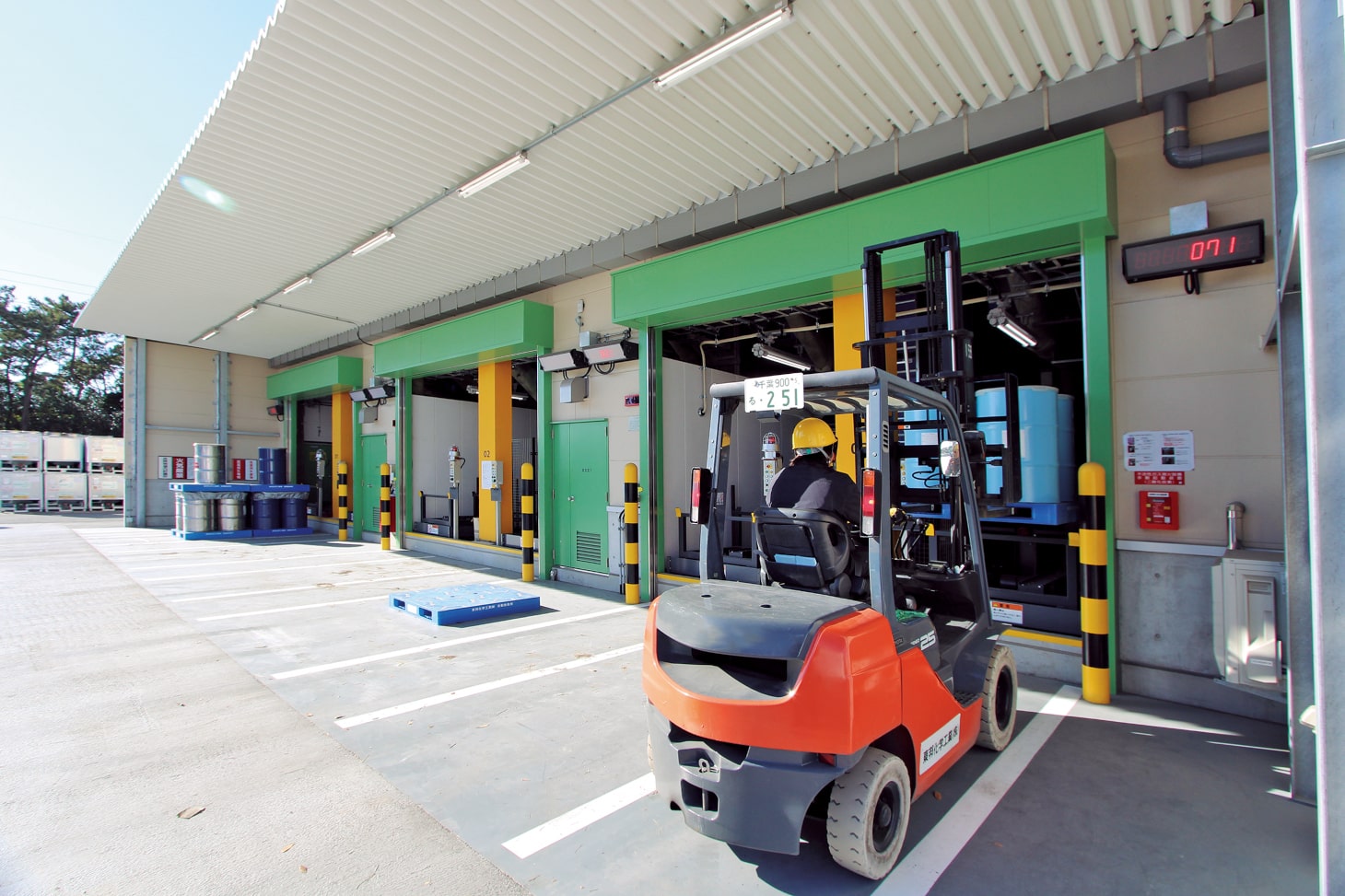千葉工場(千葉県袖ヶ浦市)は、界面活性剤と半導体向け樹脂製品の製造を主に手掛けており、敷地面積は約6万6,000m2で、生産量は約5万t/年です。工場で取り扱う原料や製品の多くは消防法で危険物に該当し、ドラム缶に入れて保管しています。千葉工場の立地は東京湾岸。塩害の影響でドラム缶は腐食しやすいものの、敷地内に危険物倉庫を建設するスペースがなかったため、原料・半製品・製品の保管と輸送の多くを、外部の物流事業者に委託していました。入出庫や在庫管理といった物流作業には手が掛かりませんが、物流コストは負担でした。